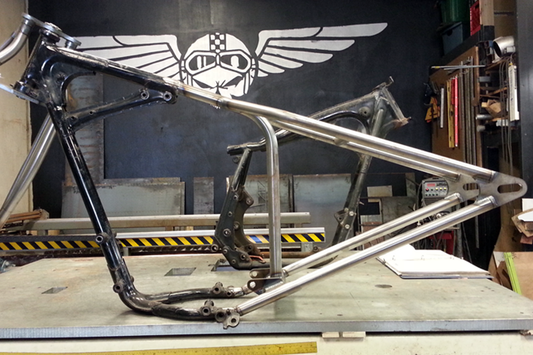 Our ever expanding line of weld-on hardtails makes customizing your ride easy and economical! To keep the cost low, on some models the backbone is strapped inside the hardtail for shipping and can easily be installed by you, the builder. Hardtails offered by Voodoo Vintage are fabricated in batch runs and do not ship immediately. Please allow 2 to 4 weeks for us to build your unit.