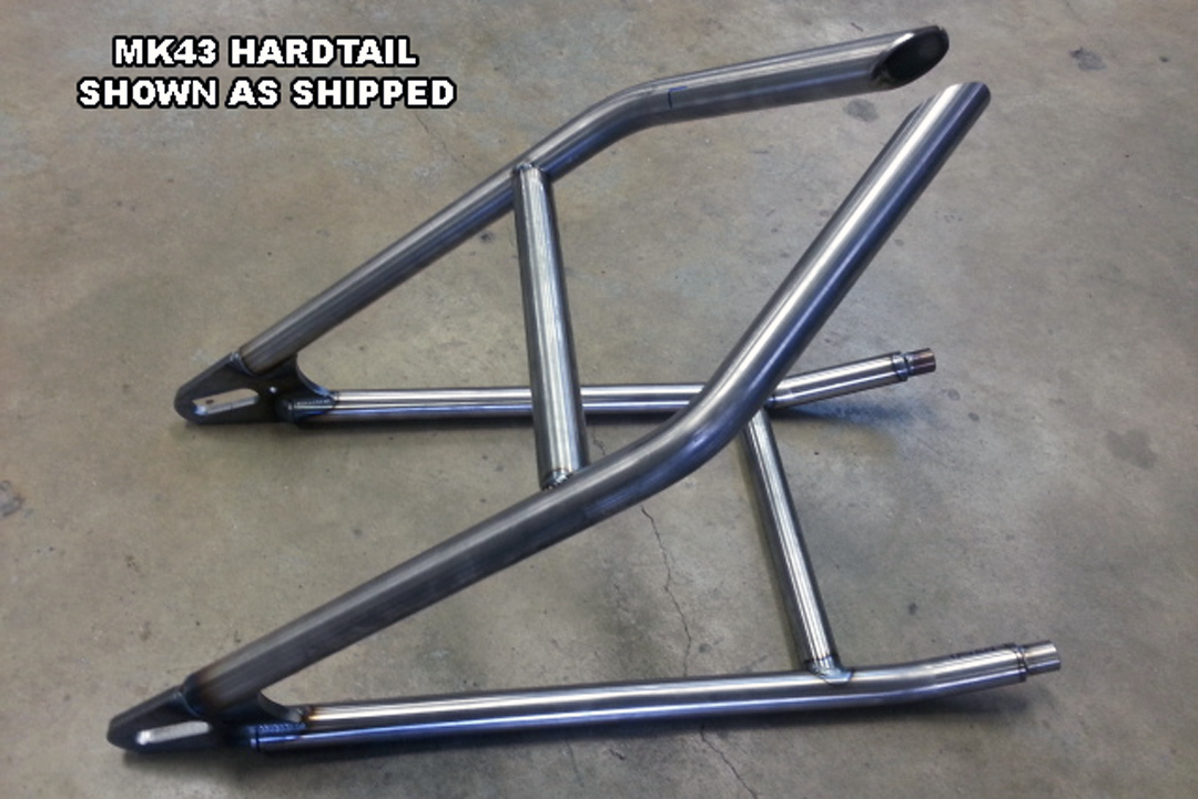 The MK43 hardtail is specifically designed for the Honda CMX450 Rebel. It features very traditional lines that seamlessly flow with the strange symmetry of the original factory frame and can be installed without the use of a professional jig.