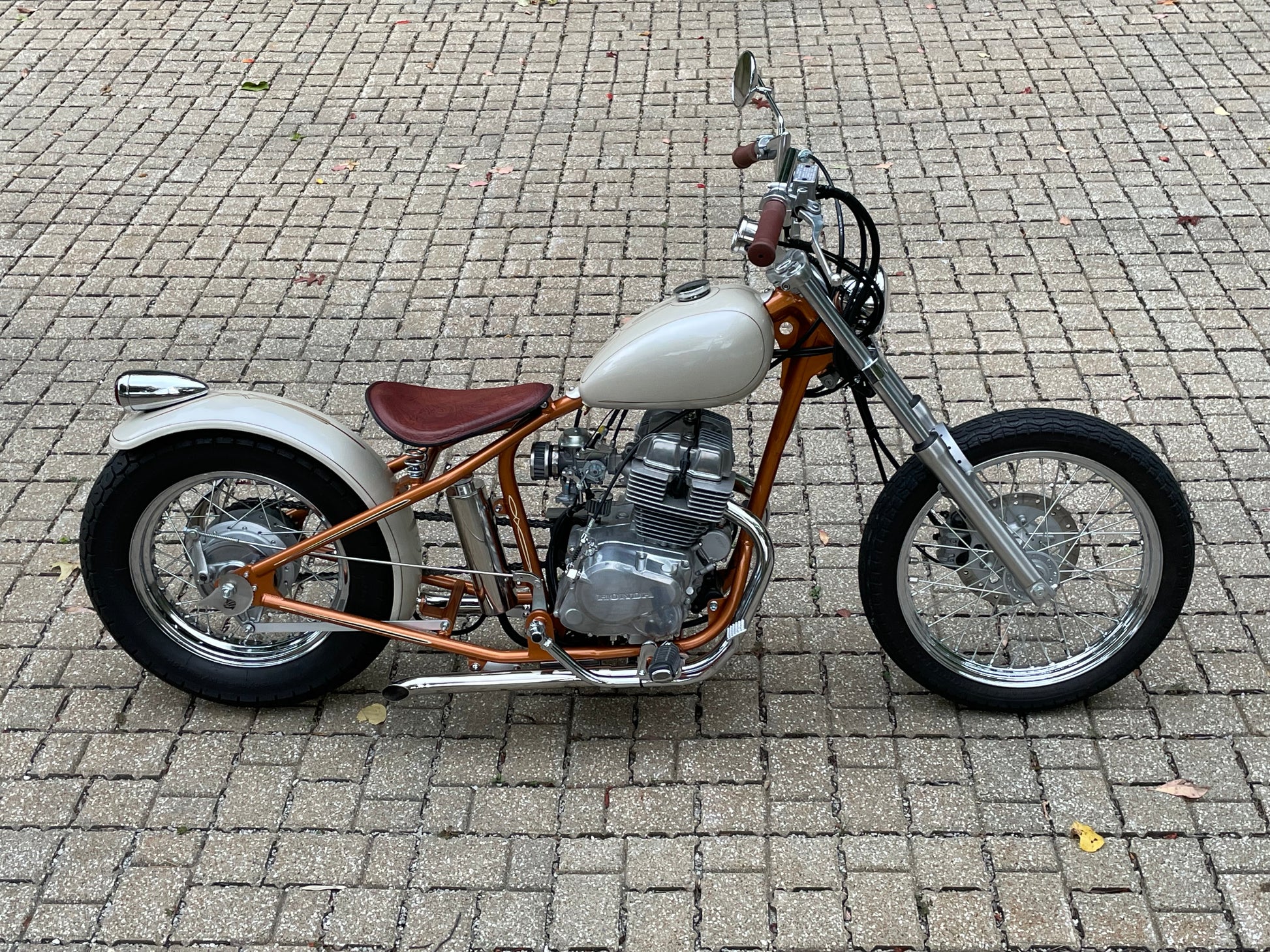 The MK41 hardtail is specifically designed for the Honda 250 Rebel original factory frame. It completely eliminates the rather LARGE backbone of the stock frame allowing traditional aftermarket tanks to be used.